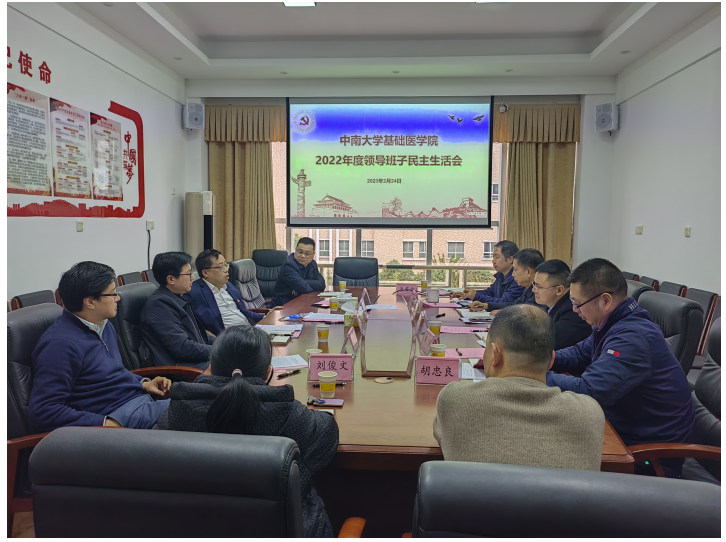 2023年2月24日上午,基础医学院党委领导班子在孝骞楼344会议室召开2022年度民主生活会,校党委常委、常务副校长陈翔,校党委督导组、校党委教师工作部部长、人事处处长田庆华到会指导,院党政班子成员参加会议。会议由院党委书记李顺长主持。
