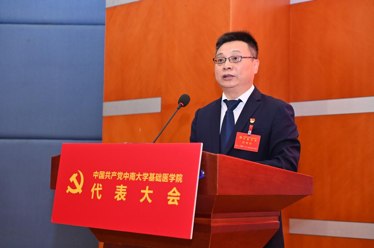 大会号召全院广大党员和师生员工更加紧密地团结在以习近平同志为核心的党中央周围,团结一心、凝心聚力,敢想敢拼、真抓真干,为奋力建设具有湘雅特色的国内一流基础医学院而努力奋斗,在全面推进中华民族伟大复兴的新征程中书写无愧于时代的学院新篇章
