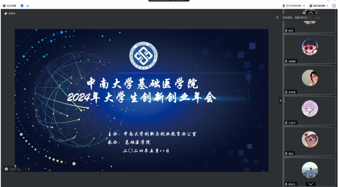 2024年5月8日晚,2024年88直播 大学生创新创业年会基础医学院分场顺利举行。本次年会共95个项目分6个会场进行线上展示,12位评委专家现场打分,评选出“优秀论文奖”推荐项目24项和“优秀创业实践奖”推荐项目1项。线上观众通过扫描二维码,投票评选出“我最喜爱的现场展示项目”28项。