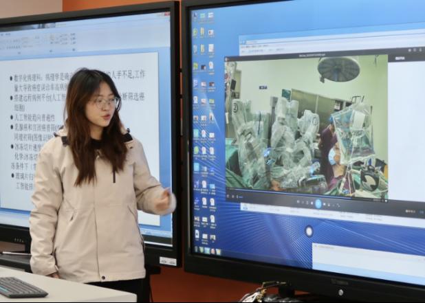在随后的报告厅分享会上,各学科小组结合前期走访88直播 湘雅附三医院的调研成果展开深度交流。神经外科小组介绍了神经外科以及脑机接口的相关知识;肿瘤小组展示了未来医疗器械更新趋势;皮肤科小组则从对皮肤科科研组会内容进行了细致的分享;移植科小组围绕器官移植后免疫监测难题,提出了患者对便携式血样检测仪的新需求;病理科小组通过图片展示介绍了病理科的工作流程,探讨人工智能在病理检验的应用。此外,还有一组同学走进手术室参观手术机器人的手术过程,分享医生与机器人的交互场景,并提出了手术机器人的改进方案。