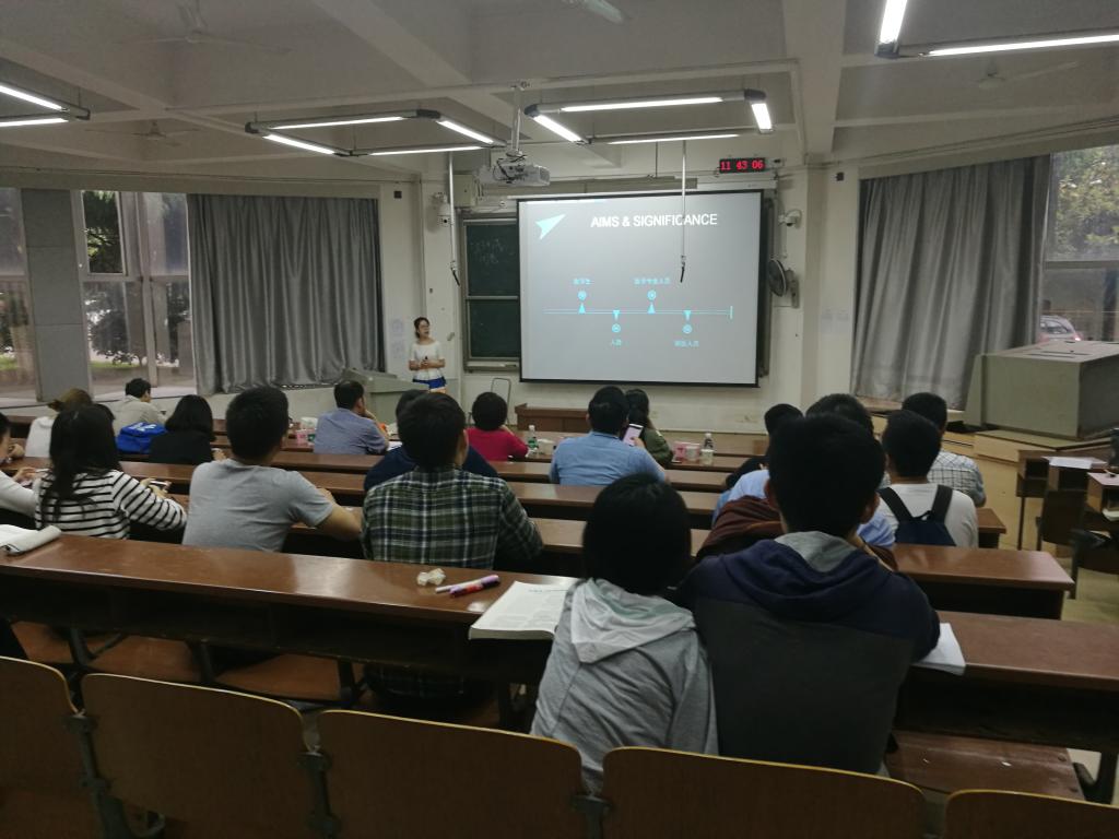 本次大会沿用往年规则,引入PPT计时器将项目展示控制在八分钟,外加两分钟的评委观众提问环节。答辩会开始后,各项目团队有序地展示了项目研究进程与成果,观众评委对展示内容提出疑问,团队共同进行回答。其他答辩团队、2017年申报了“大创”的团队、以及计划做“大创”的同学们观摩学习,在交流过程中深受启发,受益匪浅。