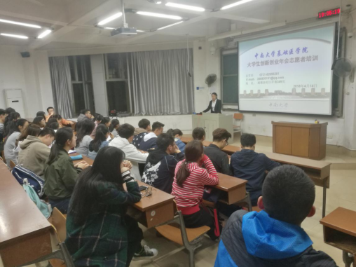 2018年4月14日7点,基础医学院在湘雅新校区T105召开2018年大学生创新创业年会工作人员培训会议,旨在加强大学生综合素质的提升,让更多的学生参与到大学生创新创业的活动中去,轮训新一批懂流程、能做事的学生干部,确保大创年会的顺利召开,为即将举行的第五届全国大学生基础医学创新论坛暨实验设计大赛做一次成功预演。
