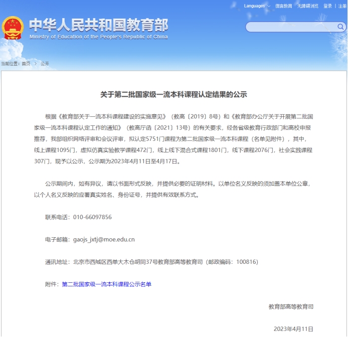 喜报:88直播 新增2门国家级一流本科课程