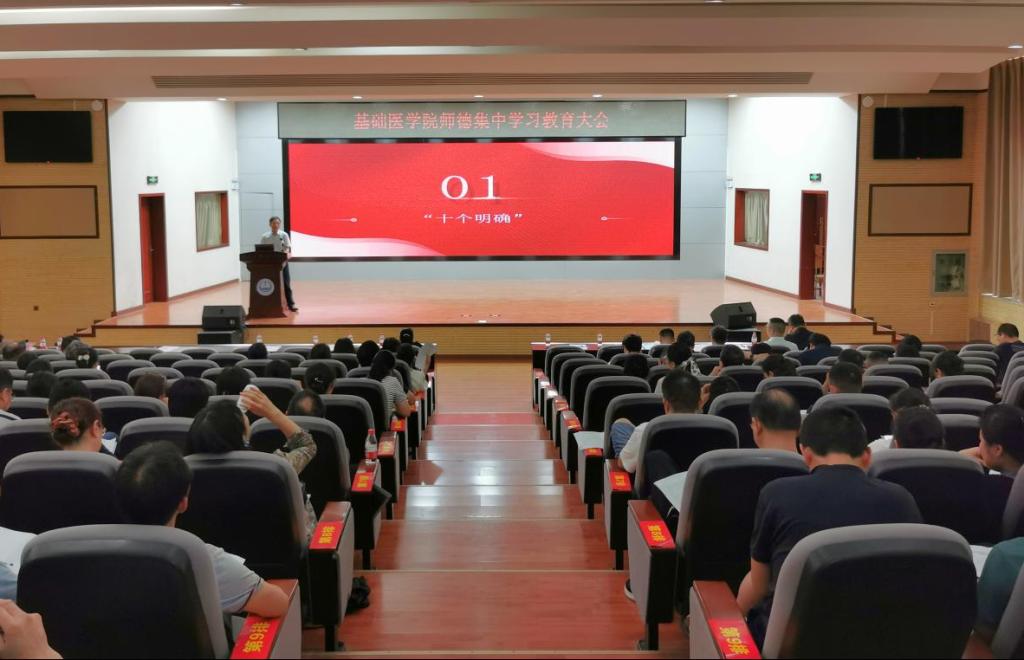 7月7日中午,基础医学院在湘雅新校区图书馆学术报告厅召开师德集中学习教育大会,李顺长书记、管茶香副院长、刘谭明副书记、王慷慨副院长、熊炜副院长、刘俊文副院长、黄河副院长出席会议,全院150多名教职工参加会议。大会由刘俊文副院长主持。