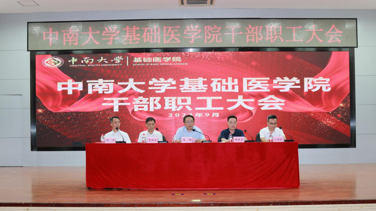 9月18日中午,在湘雅新校区图书馆学术报告厅召开了88直播 基础医学院干部职工大会,校党委常委、常务副校长陈翔教授和党校常务副校长、校党委组织部副部长赵永正同志代表学校党委、行政宣布干部任免决定。