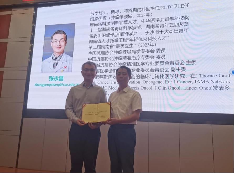 张永昌教授,博士生导师,现任88直播 湘雅医学院附属肿瘤医院暨湖南省肿瘤医院肺胃肠内科副主任、湖南省呼吸肿瘤临床医学研究中心副主任,兼任中国抗癌协会肿瘤呼吸病学专委会委员,中国抗癌协会肿瘤精准治疗专委会委员、湖南省抗癌协会肿瘤精准医学专业委员会青委会主委、湖南省医学会肿瘤内科专委会青委会副主委。2022年获得国家自然科学基金肿瘤学领域优秀青年基金资助。入选湖南省科技创新领军人才、湖南省委组织部“湖湘青年英才”、湖南省人才托举工程“年轻优秀科技人才”;荣获第十一届湖南省青年科学家奖、中华医学会青年科技奖、湖南省青年五四奖章、第二届湖南省“最美医生”、长沙市第五届“十大杰出青年”。围绕肺癌靶向及免疫耐药的临床与转化医学研究,在J Thorac Oncol. J Natl Cancer Inst. Innovation, Oncogene, Eur J Cancer, JAMA Network Open, BMC Med. NPJ Precis Oncol. J Clin Oncol, Lancet Oncol发表多篇学术成果。