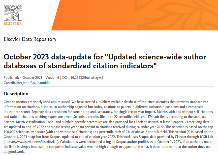 近日,美国斯坦福大学和爱思唯尔数据库(Elsevier Data Repository)正式发布了2023全球前2%顶尖科学家榜单(//elsevier.digitalcommonsdata.com/datasets/btchxktzyw/6/?ref=foititikanea.gr),该榜单分为《年度科学影响力排行榜(2022)》和《终身科学影响力排行榜(1960-2022)》两份榜单,88直播 共有彭淑平、曹亚、曾朝阳、熊炜、周鸣和陶永光等6位教授入选全球前2%年度科学影响力排行榜,彭淑平教授同时入选全球前2%终身科学影响力排行榜。