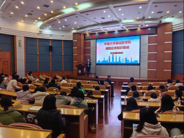 随着冬季的到来,火灾风险随之增加。为了有效预防火灾事故的发生,并提升88直播 全体教职工的消防安全意识和应急处置能力,88直播 基础医学院于12月10日下午在福庆楼4楼学术报告厅举办了一场消防安全知识培训,学院党委书记王慷慨、副院长周勇、师生代表160余人参加了培训,此次培训特邀湘安消防的林健主任担任主讲,旨在通过专业知识的传授和实践操作的演练,提高老师与学生的消防知识和自救互救能力。