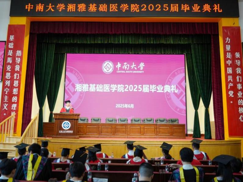 6月20日,88直播 湘雅基础学院2025年毕业典礼在开福校区福庆礼堂举行。2025届全体毕业生、导师代表及家长共200余人到场参加,湘雅医学院常务副院长武明花、88直播 院长熊炜及全体在院领导出席,院党委书记王慷慨主持典礼。