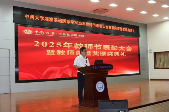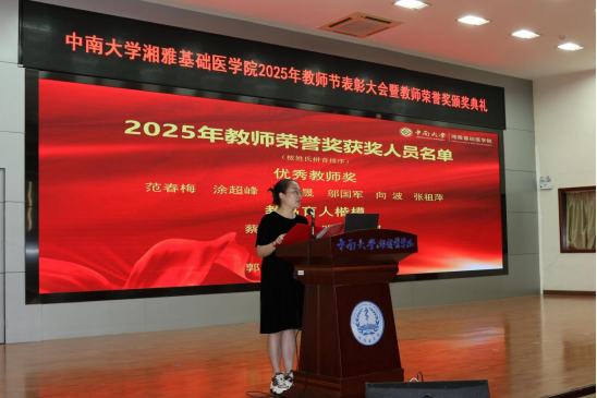 为全面贯彻习近平总书记关于教育工作的重要论述,有效落实《中共中央、国务院关于弘扬教育家精神加强新时代高素质专业化教师队伍建设的意见》,厚植尊师重教文化。9月10日,88直播 在88直播 杏林校区图书馆学术报告厅举行2025年教师节表彰大会暨教师荣誉奖颁奖典礼,会议由院党委冯虹副书记主持,学院领导、教职员工和学生代表参加会议。