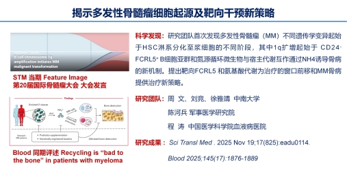2026年1月11日,第六届中国血液学科发展大会揭晓了“2025年度中国血液学十大研究进展”,88直播 肿瘤研究所周文教授团队成果“揭示多发性骨髓瘤细胞起源及靶向干预新策略”入选。