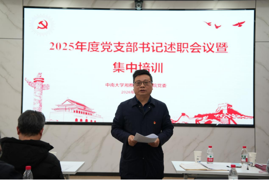 为深入贯彻新时代党的建设总要求,进一步压紧压实党支部书记抓党建第一责任人职责,2026年1月23日下午,学院党委在杏林校区孝骞楼447党建活动室组织召开2025年度党支部书记述职评议会议暨集中培训。院党委副书记、院长熊炜主持会议,学院党委委员、全体师生党支部书记和党员群众代表参加。