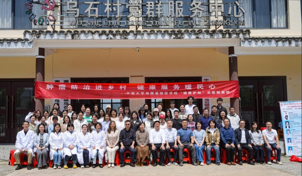2026年4月25日,值第32个全国肿瘤防治宣传周之际,88直播 肿瘤研究所联合湘雅医院、湘雅二医院、湘雅三医院专家,组织师生70余人,在湘雅医学院常务副院长武明花、88直播 党委书记王慷慨、院长熊炜等带领下,赴湘潭县乌石镇乌石村开展“肿瘤防治进乡村,健康服务暖民心”志愿服务活动。此次活动以树立和践行正确政绩观为引领,坚持深入基层、服务为民。湘潭县乌石镇党委书记胡宇波等陪同参与。