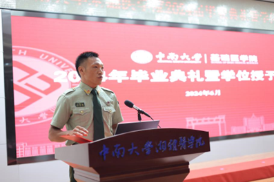 我是法医1901班的王兴绕,很荣幸能够站在这里,代表基础医学院2024届全体本科毕业生发言。请允许我代表全体本科毕业生向辛勤付出的领导和老师们表示最衷心的感谢和最崇高的敬意!